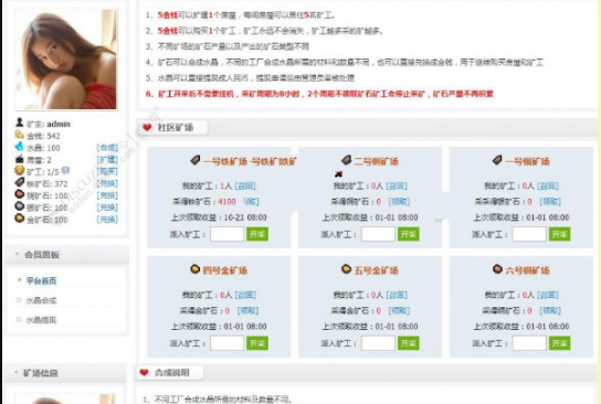 14.支持后台自定义矿场规则、水晶合成说明、扩建房屋的说明、购买矿工的说明、出售矿石的说明、水晶提现的说明