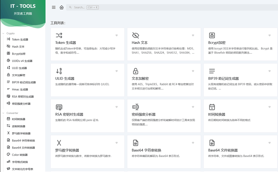 IT Tools是一个免费且超全开发人员在线工具集合,对于开发人员和 IT 工作人员来说非常有用的工具,