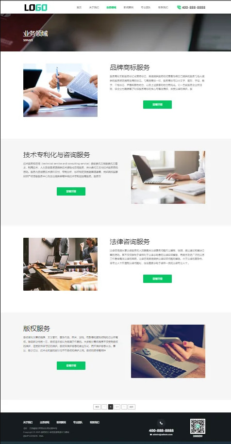 PbootCMS内核开发的网站模板,该模板适用于商标注册网站、专利申请网站等企业,当然其他行业也可以做,只需要把文字图片换成其他行业的即可;(PC+WAP),同一个后台,数据即时同步,简单适用!附带测试数据!