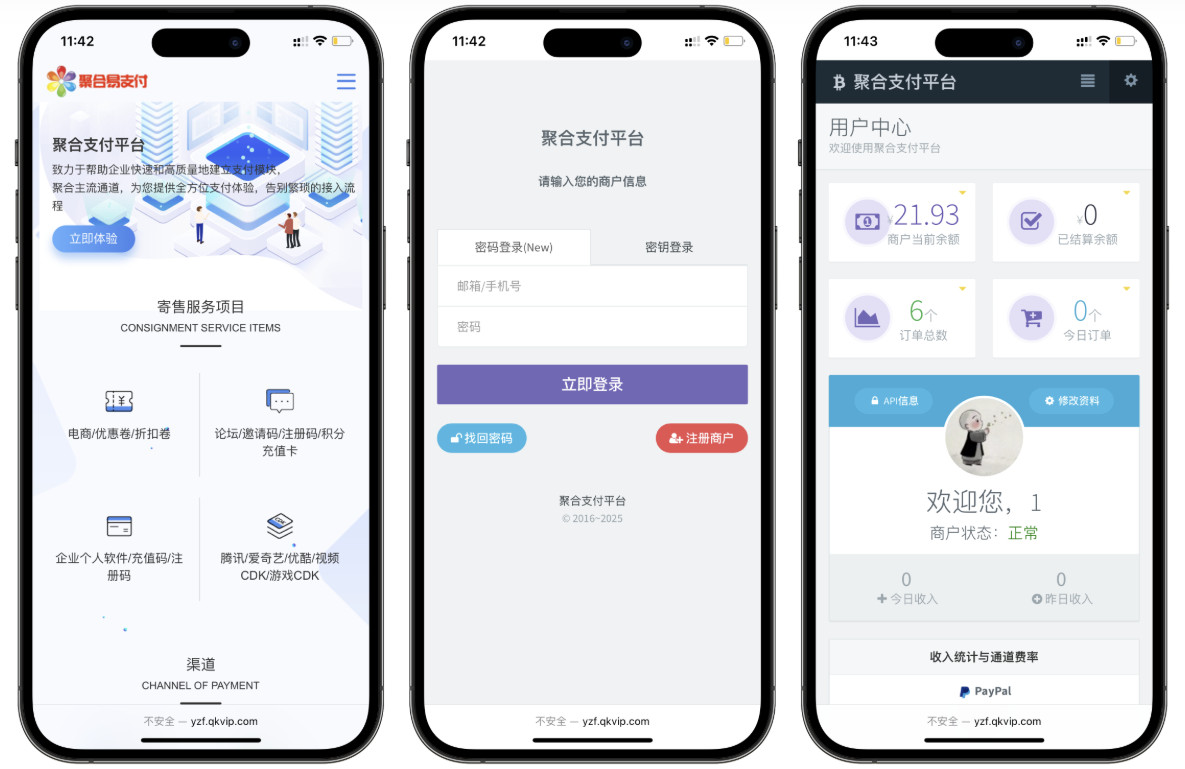 支持支付宝、微信、银联、QQ钱包等主流支付渠道,让您拥有PC网页支付、扫码支付、手机APP支付、移动HTML5支付、微信公众号支付等;