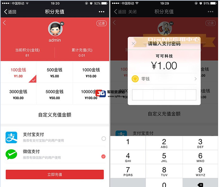 1,支持支付宝付款充值,支持微信付款充值,支持微信扫码付款充值。