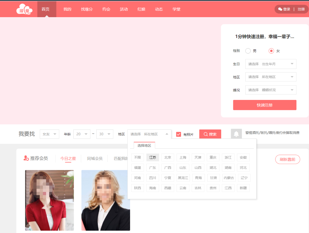 这款交友系统功能太多了,适合婚恋相亲,还有媒婆红年、婚庆等等