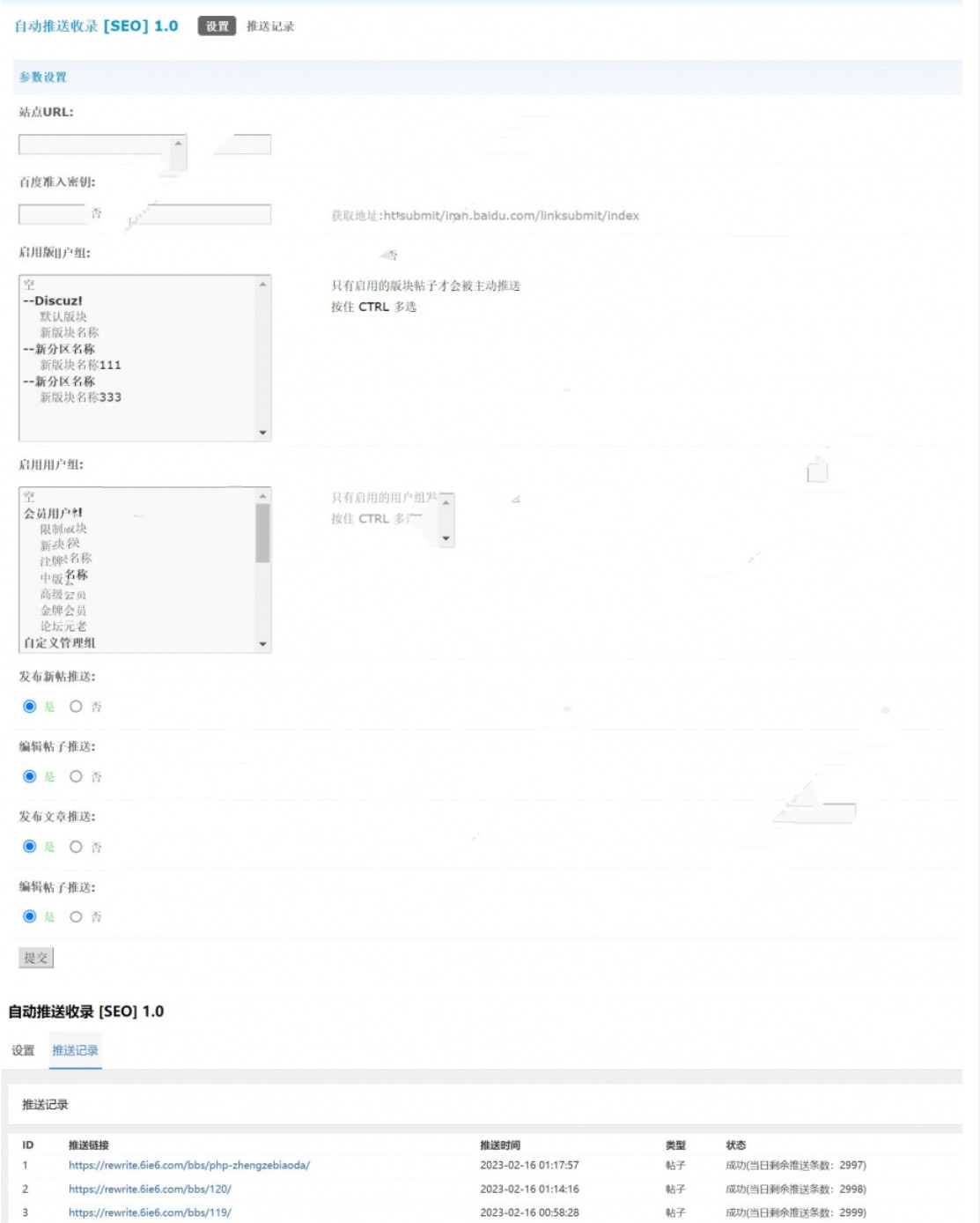 2 . 可设置指定用户组发帖推送