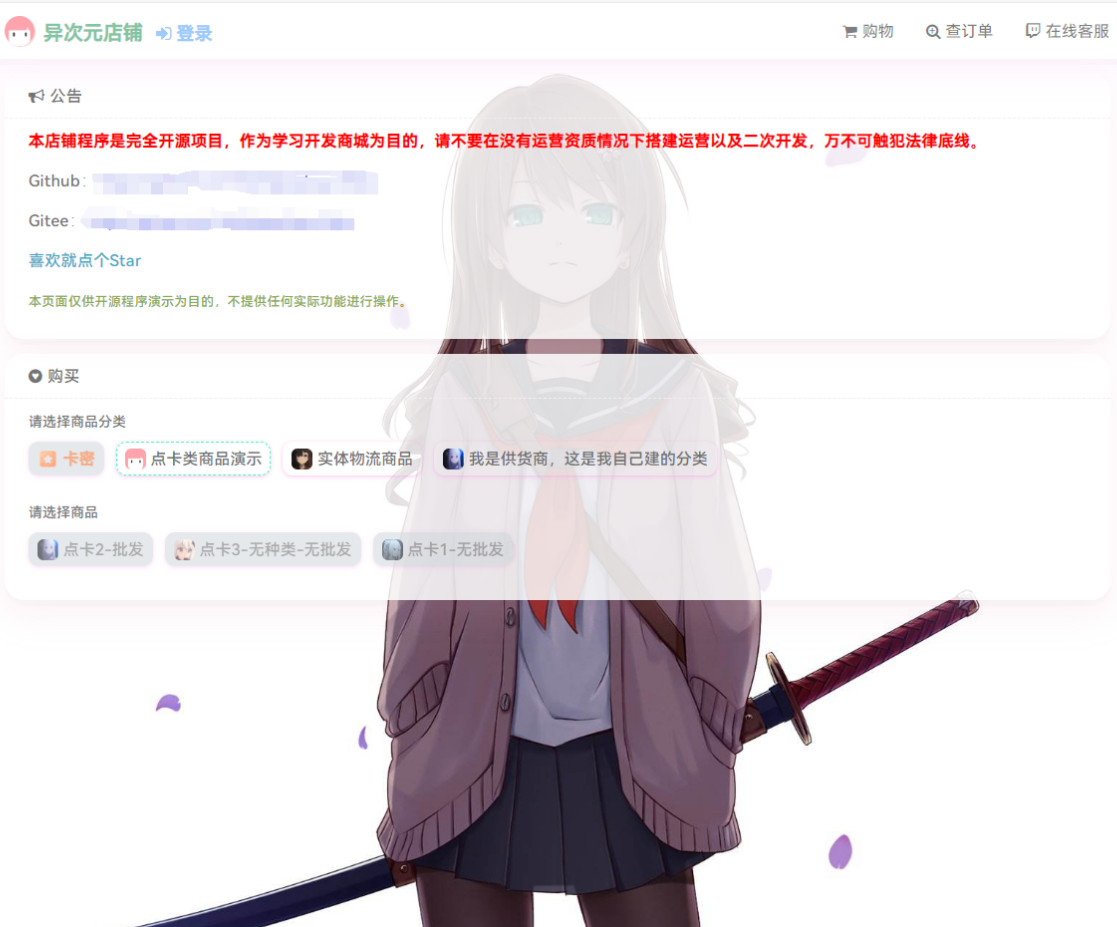 将源码下载至你的服务器、或者使用composer下载源码:composer create-project lizhipay/acg-faka:dev-main
