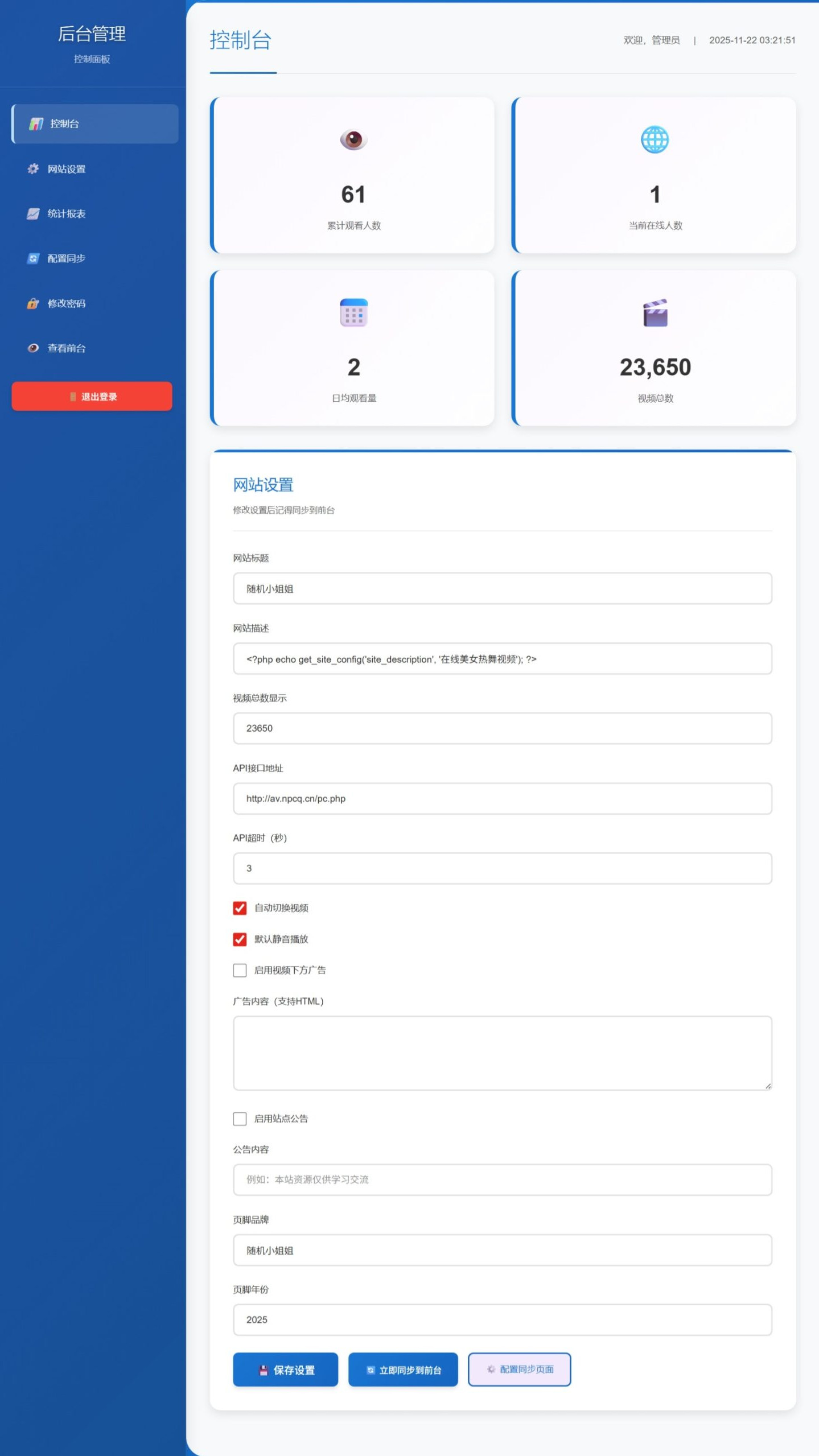 随机小姐姐热舞视频系统源码全新UI带后台版v5.0 自适应手机端